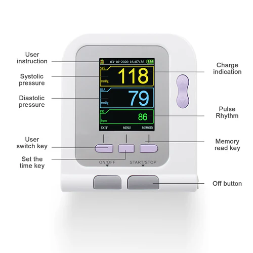 CONTEC08A is a desktop Electronic Sphygmomanometer,High-definition color LCD display,supply English/Chinese interface,Strong visibility.Fully automatic blood pressure measure,it can be a household sphygmomanometer which is used for adult, pediatric and neonatal.The device has the function of parameter measure,display and record output,and adopt data review interface such as "data list", "trend chart", "big font",with SpO2 measure function(with optional SpO2 probe).It can be applied to the clinique,physical center and daily health care of family member.
